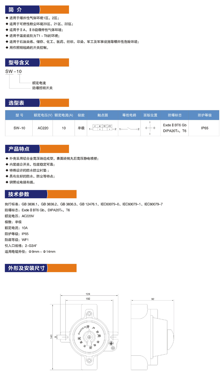 所属类别:产品中心 > 防爆电器类 > SW-10系列防爆照明开关(IIB、DIP)